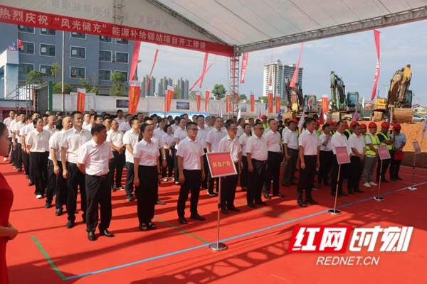 懷化市“風(fēng)光儲充”能源補(bǔ)給驛站項目開工儀式現(xiàn)場。