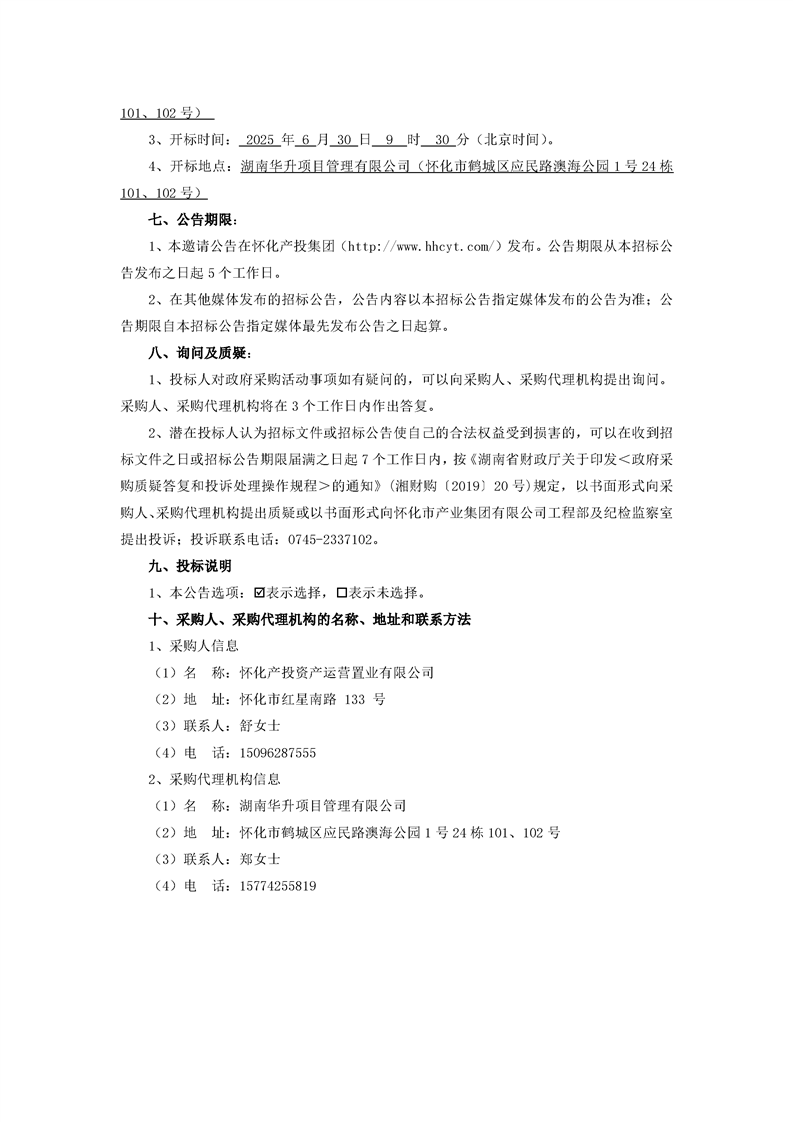 懷化產投辦公樓保安保潔服務競爭性磋商邀請公告